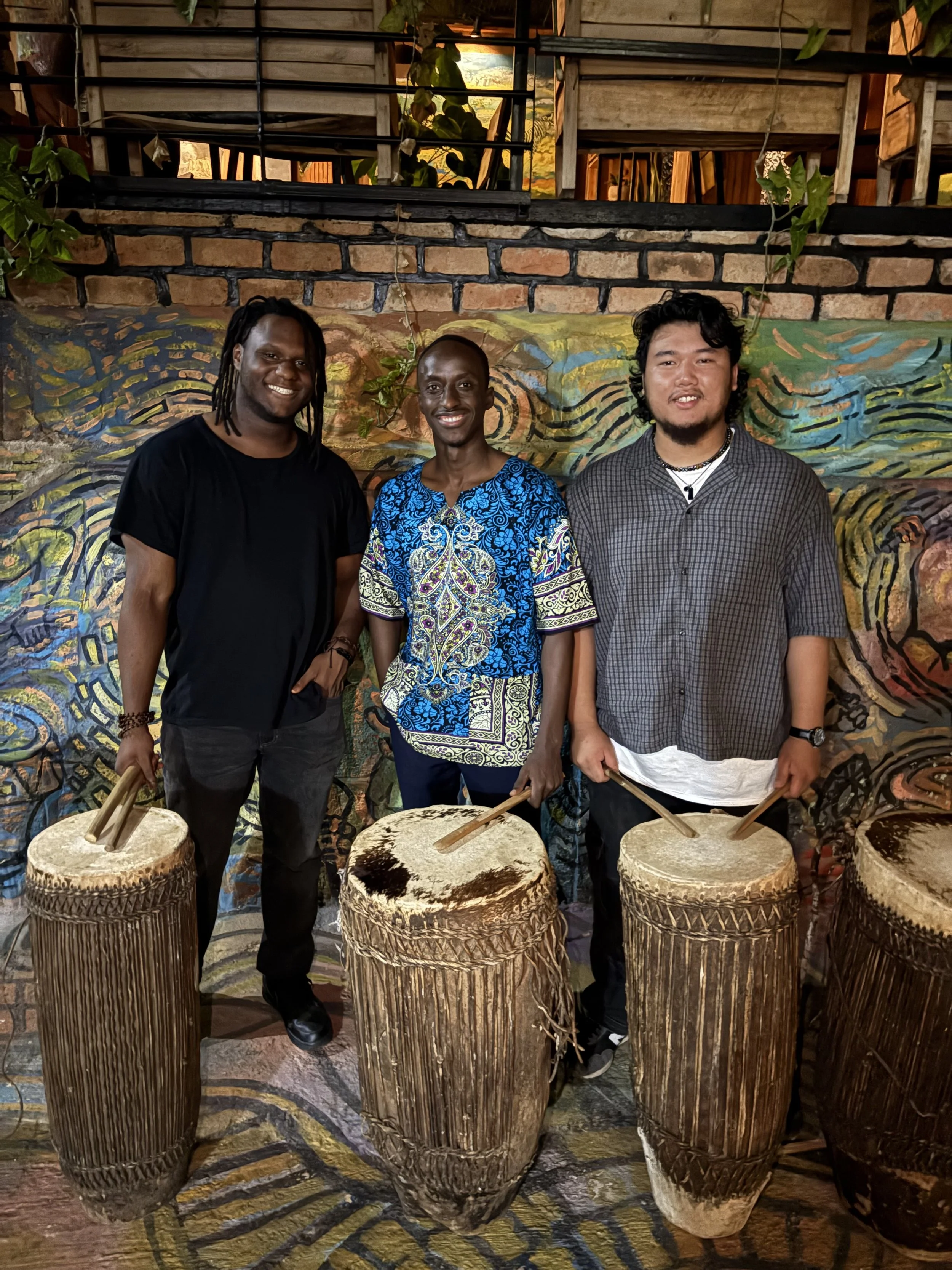 Dance and drumming class was so fun! We got to learn traditional Rwandese drumming and dancing. The dance mimics the beautiful way cows move, and it really uses the whole body making it a very difficult dance. The drums enhanced the movements, and I felt myself just getting lost in the beat.